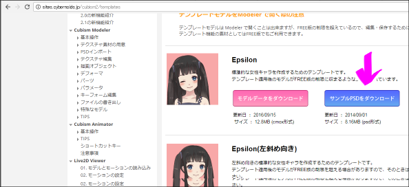 どのような状態にするのが良いかは、Live2Dサイトからダウンロードできる